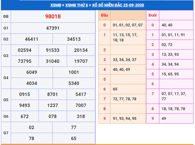 Trước khi phân tích chúng ta sẽ xem lại bảng kết quả xổ số miền bắc chiều qua để có dữ phân tích, thống kê xsmb cho ngày mai 26-9-2025, xem có nhiều biến đối như nào nhé.